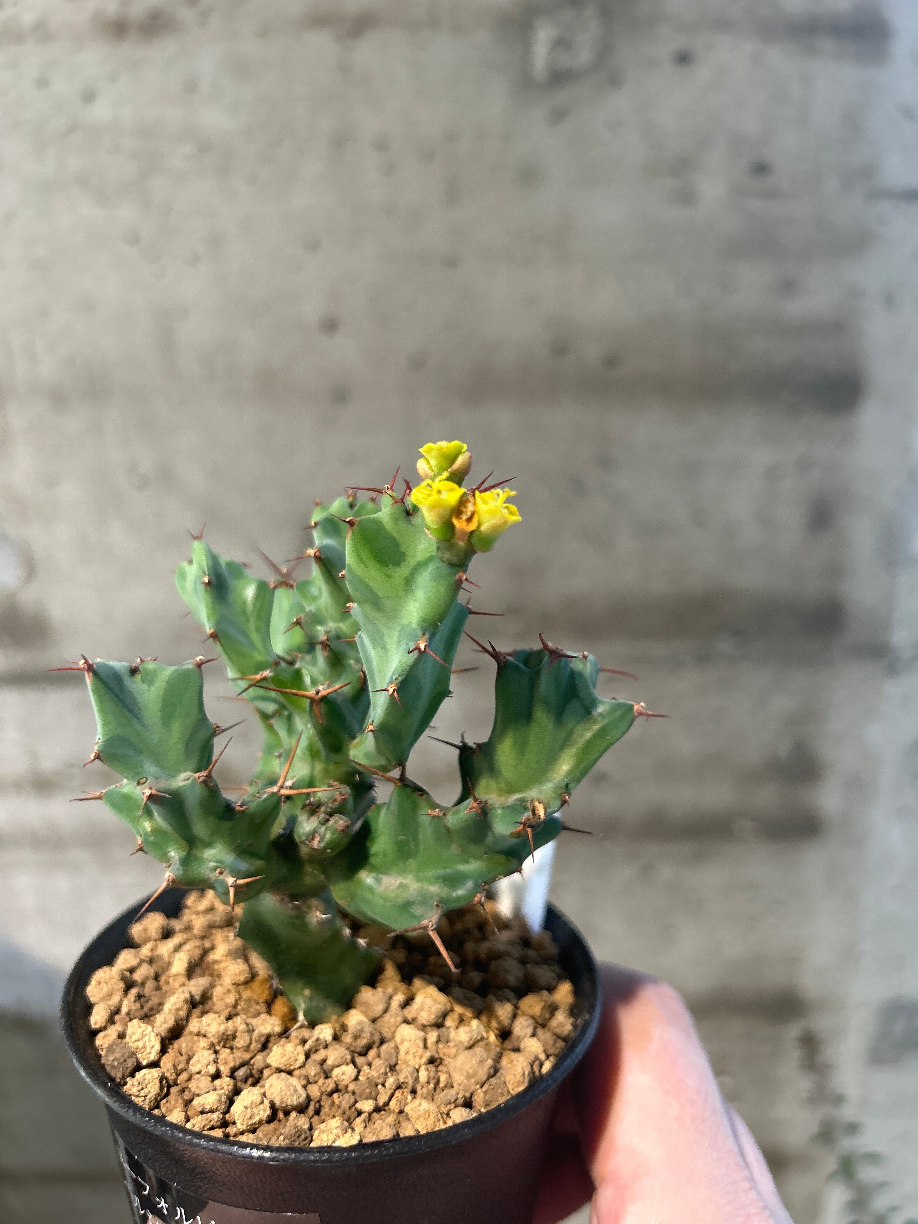 独特なひねりと棘が魅力の希少なユーフォルビアです。お花も咲きます。